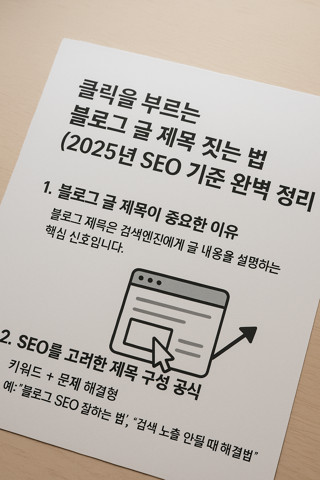 블로그 제목은 단순한 이름이 아니라 검색엔진에게 글 내용을 설명하는 핵심 신호입니다. 동시에 방문자에게는 클릭할지 말지 결정하는 첫 관문이죠.